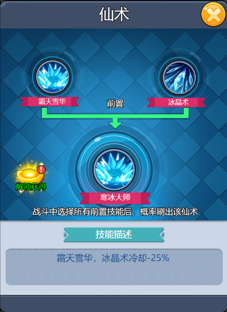 技能介紹很簡單理解,命中怪物就可以凍結,且合成路徑也比較簡單,只要解鎖冰晶術就有概率刷到。? ??