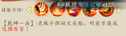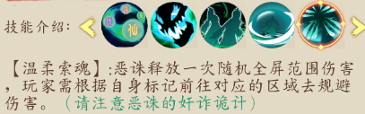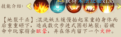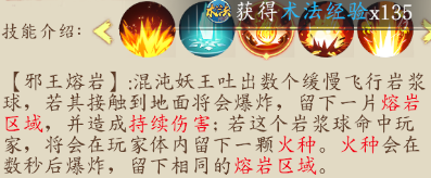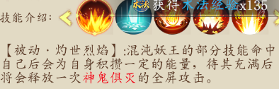 注:這個技能可以說不算是BOSS技能,說是福利更貼切一點,場地中會刷新4-5個小魔兵,玩家擊殺后會有個光團(tuán),可以吃掉的,吃完后會有個額外的技能【如上圖顯示】,技能圖片解釋的比較模糊,直白一點,在BOSS飛天落地后,此技能才可對BOSS釋放,削弱BOSS熱量值,三層意思,1.削弱BOSS技能一所獲得能量值。2.降低玩家所受技能傷害。3.降低灼傷狀態(tài)的增幅。