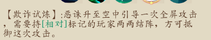 【天魔神結(jié)測】:這一關(guān)的機(jī)制也是很多半生不熟的人,和新手需要特別注意的一關(guān)。掌握不好機(jī)制,會導(dǎo)致整個團(tuán)隊的覆滅。BOSS一二階段的時候相對難一些,第三階段相對簡單一些。?第三階段出現(xiàn)的技能雖然也是全屏攻擊,但是持續(xù)時間短,傷害低;分清陣營歸屬是重點。最重要的環(huán)節(jié)就是黃色光圈那一節(jié),一定不要出圈,還要及時的根據(jù)箭頭提示做出站位調(diào)整。