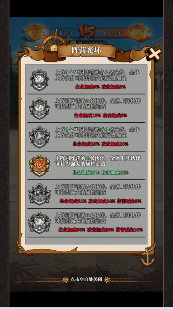 玩家需巧妙構建戰(zhàn)斗陣容,依據(jù)不同戰(zhàn)局靈活調(diào)配角色,憑借策略與絕技征服對手,享受燒腦且激爽的戰(zhàn)斗快感。隊伍中可以編入6名角色,角色有4種陣營和4種定位。陣營分為世界政府、新星團、大海賊、海軍和五皇;定位分為輔助、肉盾、輸出、控制。陣營之間沒有克制效果,會根據(jù)上陣中同陣營的英雄數(shù)量獲得傳說之力的加成。戰(zhàn)斗的攻擊順序是根據(jù)在布陣的站位1-6號進行,雙方一號角色會優(yōu)先行動以此類推,可以根據(jù)你隊伍中6名角色的定位設置合理的排陣出手順序。