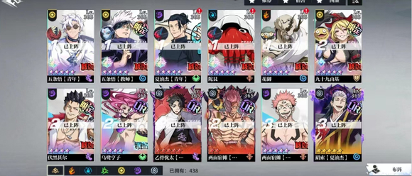 新手期:集中資源培養(yǎng)1-2個核心輸出(如五條悟),搭配2個輔助(東堂葵、七海建人)快速推圖。